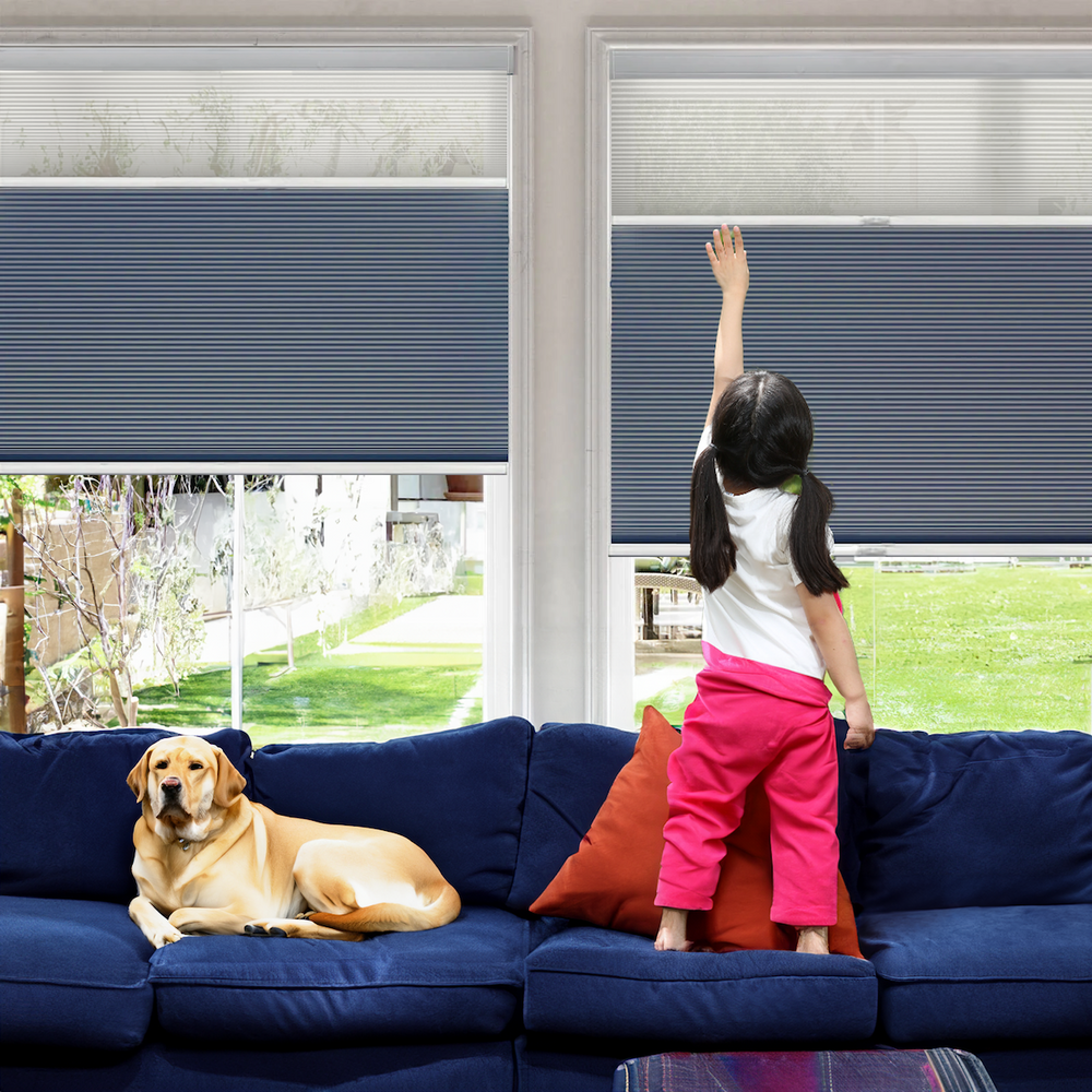 No-Drill Cordless Day-Night Cellular Shades offer effortless installation with a tool-free, renter-friendly design. Featuring dual-fabric light control, switch between sheer filtering for daylight and blackout for privacy. The honeycomb structure improves energy efficiency, while the cordless lift system ensures child and pet safety. Perfect for any room!