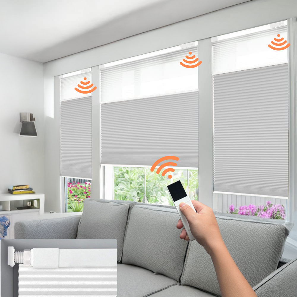 Elevate your living space with our Premium Motorized Battery Day Night Dual Shades Cellular Shades, designed for convenience, style, and functionality. Featuring dual control options—built-in controls on the battery and a 6-channel remote controller—these shades offer effortless operation. The Detachable Type-C rechargeable battery lasts up to 6 months on a single charge, while customizable sizes ensure a perfect fit for any window. Choose between blackout or light-filtering fabrics to suit your privacy and lighting needs. With a no-drill installation, setup is quick and renter-friendly. These shades seamlessly blend modern technology with sleek design for a practical and elegant window solution that enhances any space.