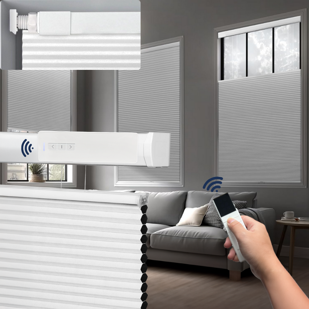LazShades motorized top-down bottom-up shades are designed with a single motor drive system that delivers smooth, quiet operation in a simple and reliable structure. The top section and fabric section are mechanically linked, allowing coordinated movement while maintaining the clean look and ease of use LazShades is known for.